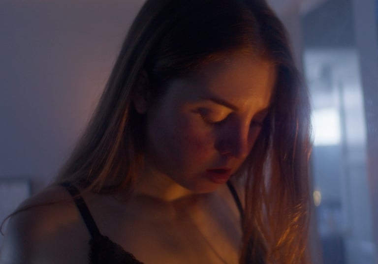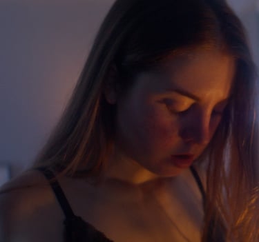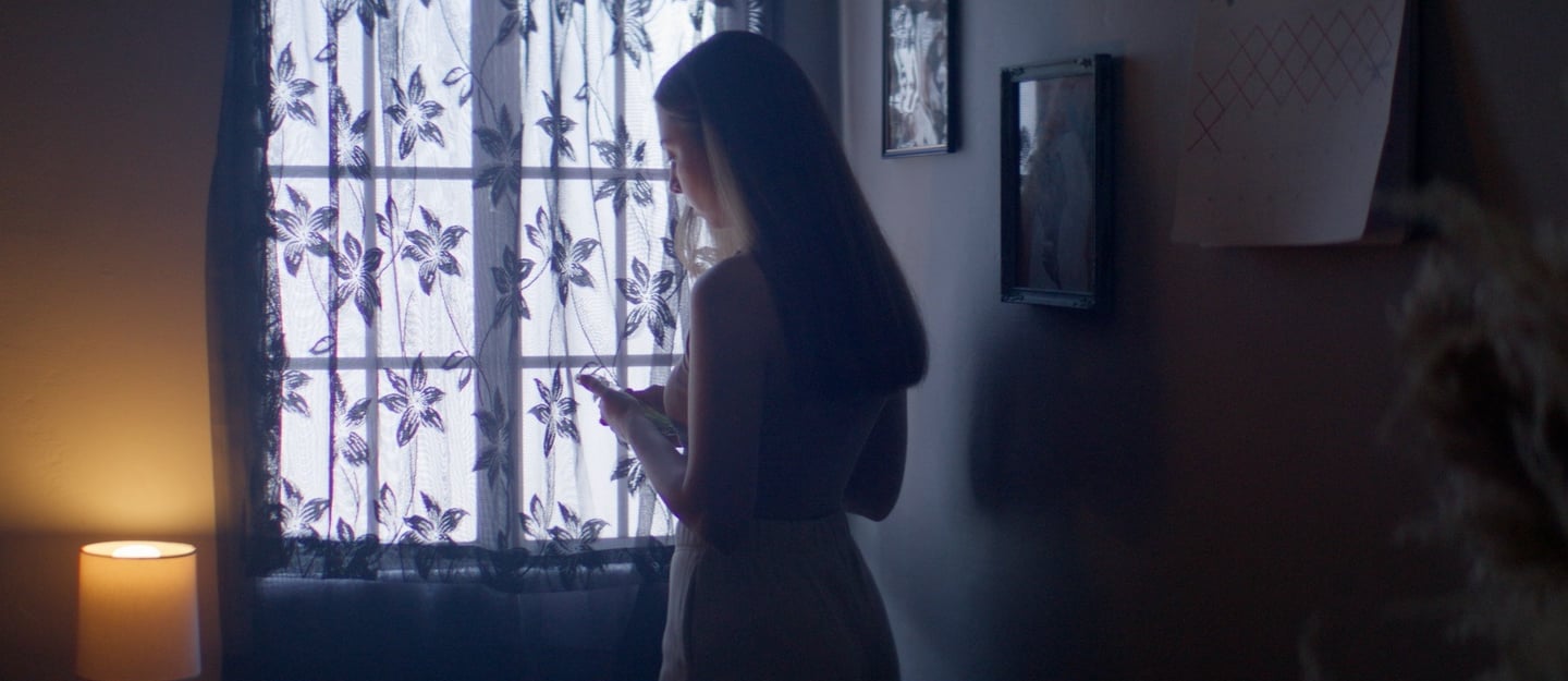We used Anamorphic Lenses to reveal more negative space to accentuate her loneliness and Frame-Within-A-Frame to create a sense of being trapped for the protagonist.